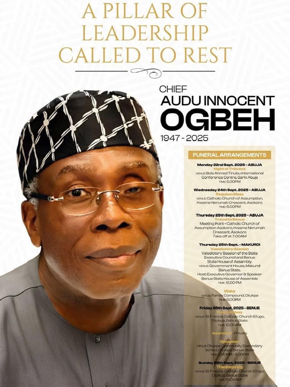 His family, friends, and the nation at large remember him fondly as he rests after a life well-lived in service to his country. Condolences continue to flow for Mrs. Ogbeh and the entire family, with prayers for strength and comfort in this time of sorrow.