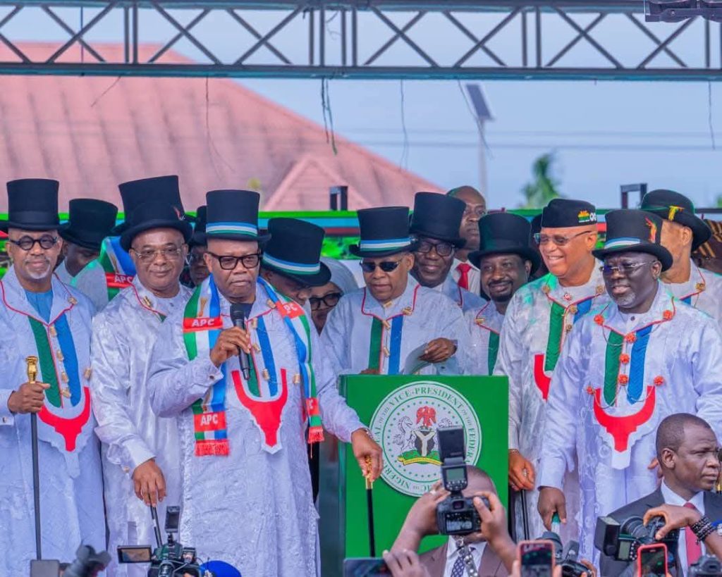Governor Douye Diri of Bayelsa State has formally defected from the Peoples Democratic Party (PDP) to the All Progressives Congress (APC) in a well-attended ceremony in Yenagoa, the state capital. The event was graced by top APC leaders including Vice President Kashim Shettima and Senate President Godswill Akpabio, alongside several APC state governors from different parts of Nigeria. Senator Konbowei Friday Benson, Senator Benson Agadaga, and the Speaker of the Bayelsa State Assembly, Rt. Hon. Abraham Ingobere, also joined the APC alongside other appointees under the Prosperity Administration.