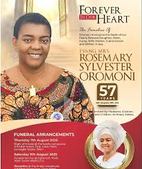 The family of late Evangelist Mrs. Rosemary Oromoni has announced her burial plans, nearly eight months after her passing in November 2024.