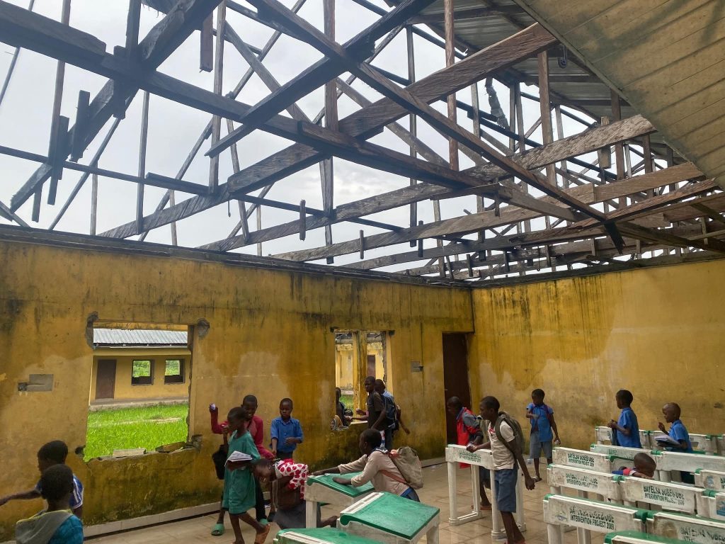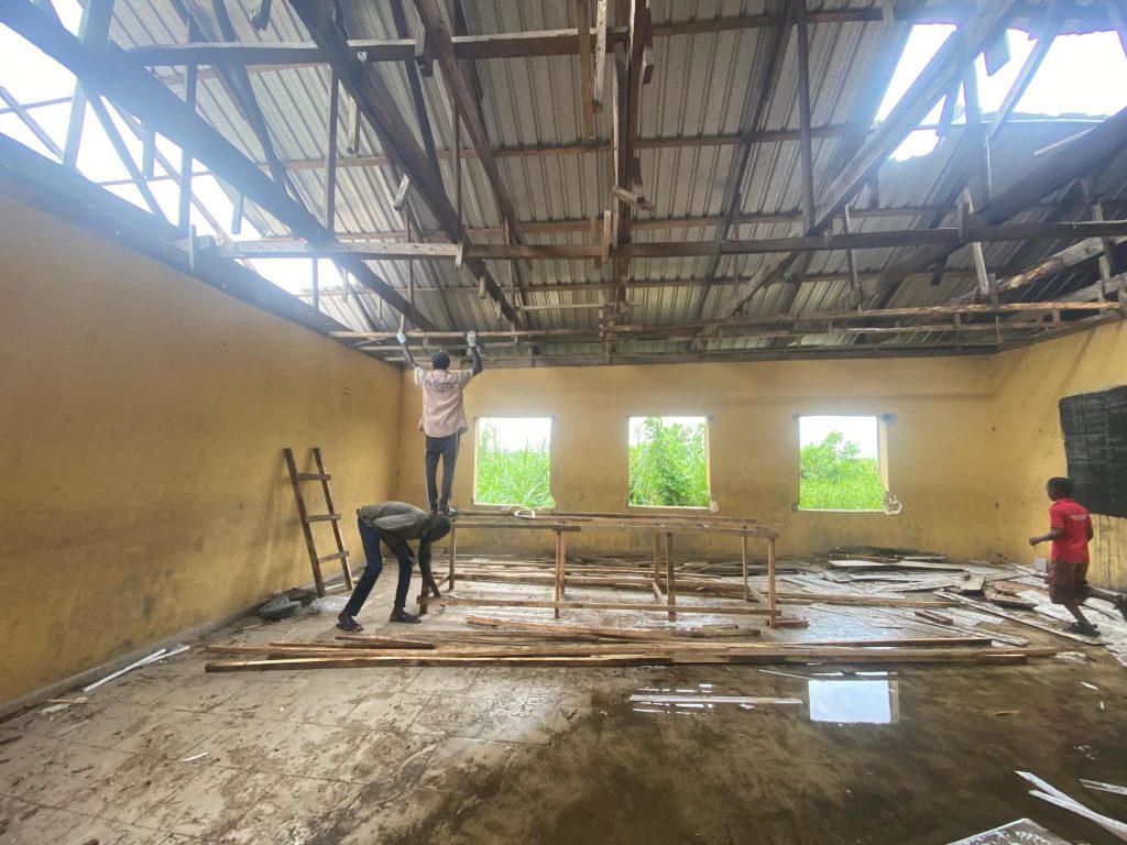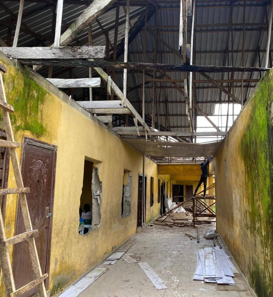 The turning point came when Brown-Ofoeme, during a routine visit, was struck by the grim realities facing pupils: lessons conducted in flooded, roofless classrooms, children drenched by rainfall, desperately shielding their books, and learning amid broken windows, missing doors, and exposed ceilings. The sight left a lasting impression, compelling him to pivot from his original Community Development Service (CDS) project focused on anti-cultism to addressing the school’s dire infrastructural needs.