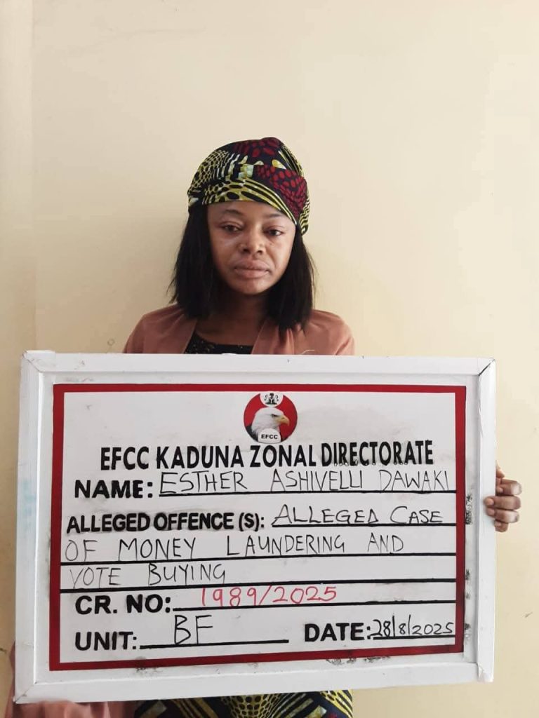 The Kaduna Zonal Directorate of the Economic and Financial Crimes Commission, EFCC, on Wednesday, September 10, 2025, arraigned one Esther Ashivelli Dawaki and Shehu Aliyu Fatange before Justice Emeka Nwite of the Federal High Court, sitting in Abuja for financial crimes.