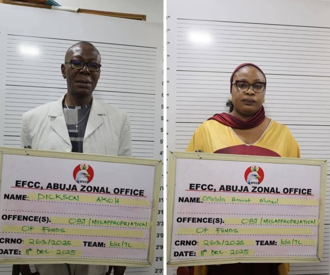 The Abuja Zonal Directorate of the Economic and Financial Crimes Commission, EFCC, on Thursday 11, December, 2025, arraigned the Commandant of the Nigeria Peace Corps, Dickson Akon and the Director of Finance of the Corps, Omolola Aminat Ahmed, before Justice H. B. Yusuf of the Federal Capital Territory, FCT High Court, Abuja.