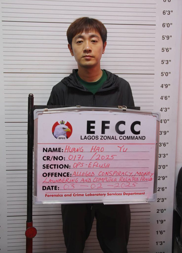 The Lagos Zonal Directorate of the Economic and Financial Crimes Commission, EFCC, on Monday, March 17, 2025, arraigned two Chinese, Huang Haoyu and An Hongxu ,alongside a Nigerian, Audu Friday, before Justice Daniel Osiagor of the Federal High Court sitting in Ikoyi, Lagos.