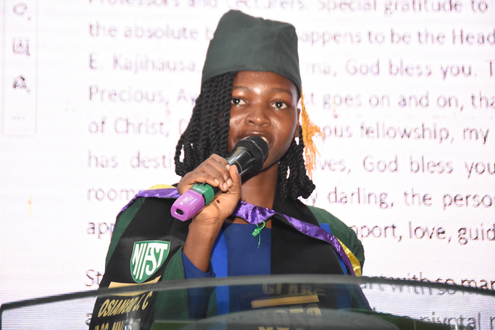 She concluded her address with three symbolic bows: one in remembrance of departed classmates, another in honour of FUNAAB, and a final bow in deep appreciation of the sacrifices made by parents and guardians. Her moving tribute drew wide applause, turning a personal story of faith and family support into a powerful celebration of collective effort and academic excellence.