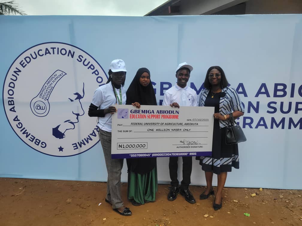 Four students of the Federal University of Agriculture, Abeokuta (FUNAAB) have emerged beneficiaries of the prestigious Gbemiga Abiodun Educational Support Programme, an initiative of the Ogun State Governor, Prince Dapo Abiodun, held in honour of his late son, Gbemiga, on Tuesday, October 7, 2025, at Christ Apostolic Grammar School, Iperu Remo.