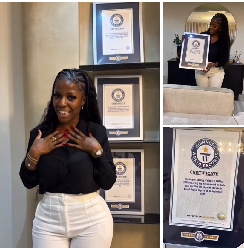 Popular Nigerian chef, Hilda Baci, has received her third Guinness World Record certificate plaque after the organisation confirmed her as a three-time record holder in January.