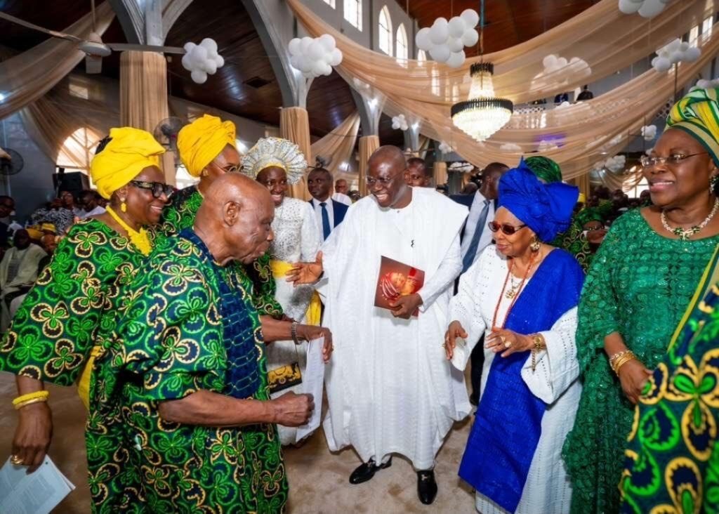 Mama Victoria, resplendent in white with a royal blue gele, was the embodiment of grace and humility. Her presence commanded respect as she was honored by a who’s who of Nigerian leadership and society. The front pews of the church held Vice President Kashim Shettima, Senate President Godswill Akpabio, Speaker Tajudeen Abbas, and other top federal officials. Governors from Lagos, Oyo, Osun, Ekiti, Kwara, Imo, and Akwa Ibom states were part of the high-profile gathering, emphasizing the occasion’s national importance.