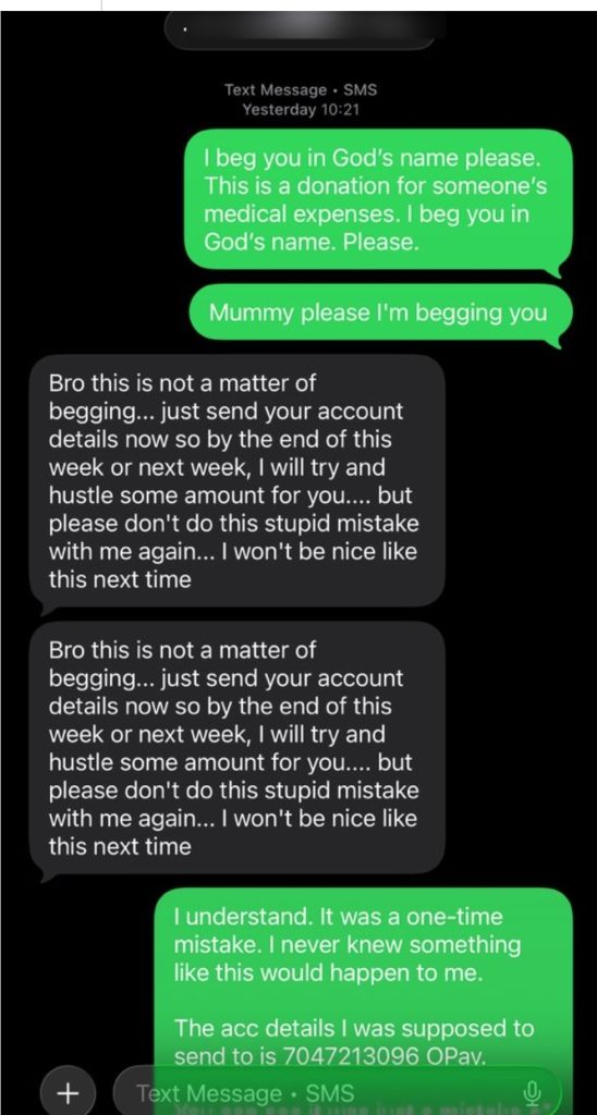 Chukwuebuka’s initial attempts to resolve the issue amicably were met with a series of conflicting stories from the recipient. When first contacted via phone, Awodoyin reportedly denied seeing the credit. However, during a subsequent call, she admitted the funds had arrived but claimed she could not return them.