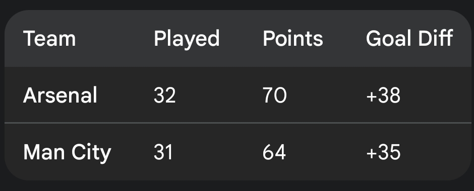 Arsenal’s once-comfortable grip on the title race was shaken on Saturday after a stunning 2-1 home defeat to Bournemouth at the Emirates Stadium. The result, coupled with Manchester City’s ruthless 3-0 demolition of Chelsea at Stamford Bridge, has reduced the gap at the top to just six points. With Pep Guardiola’s side holding a crucial game in hand and a head-to-head clash looming this Sunday at the Etihad, the momentum has swung firmly toward Manchester.