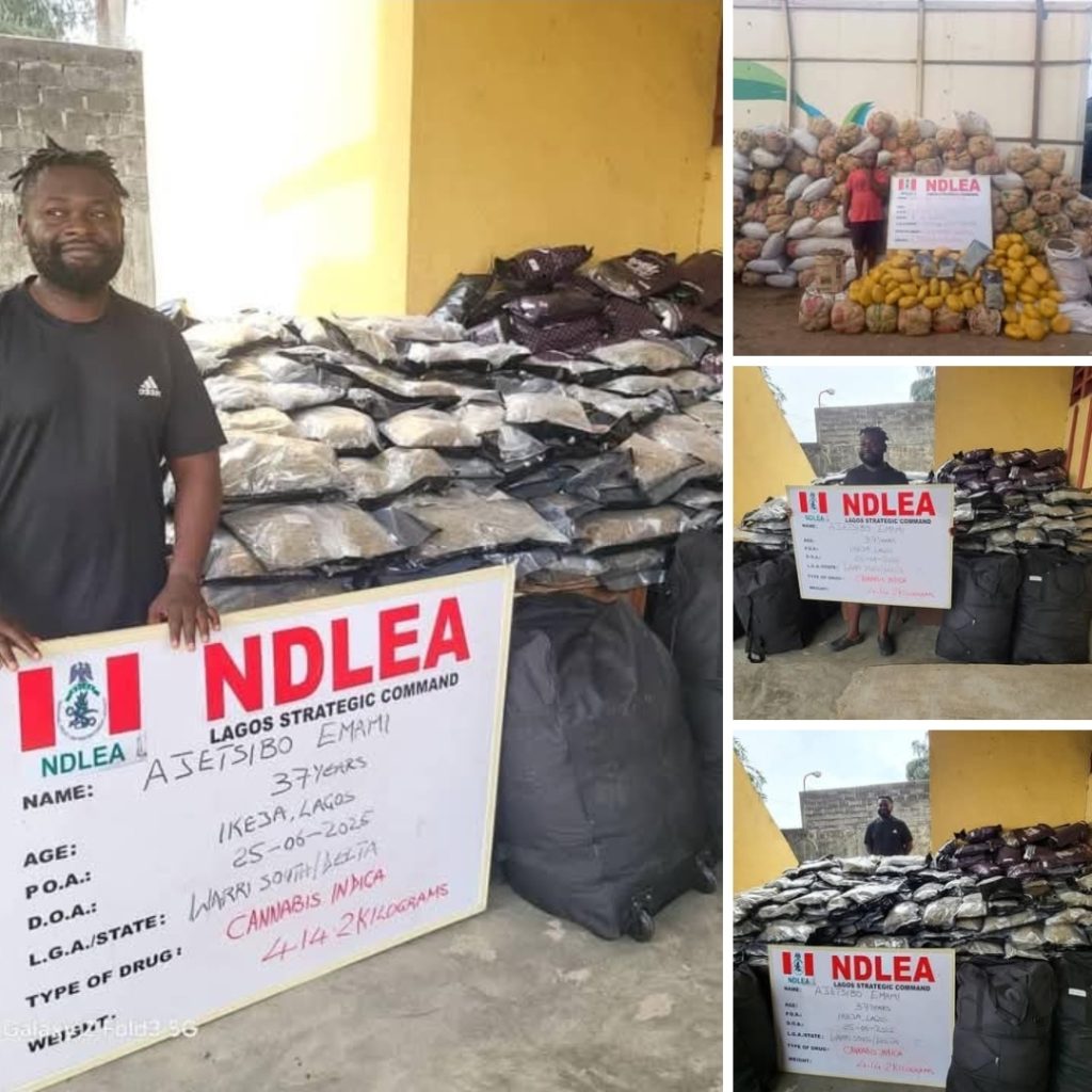 Ajetsibo Emami, 37, was arrested by NDLEA operatives in Ikeja, Lagos, on June 28, 2025, after a three-day operation that dismantled his drug trafficking network. Authorities seized 414.2 kilograms of “Canadian Loud,” a potent strain of cannabis, packed in 24 jumbo bags containing 681 pouches. Emami’s network was intercepted after intelligence indicated plans to move the drugs to the Lekki area for further distribution across Lagos and beyond. He was convicted on a charge of dealing in illicit drugs and sentenced to six years in prison with an alternative fine of N50 million by Justice Deinde Dipeolu on August 18, 2025.
