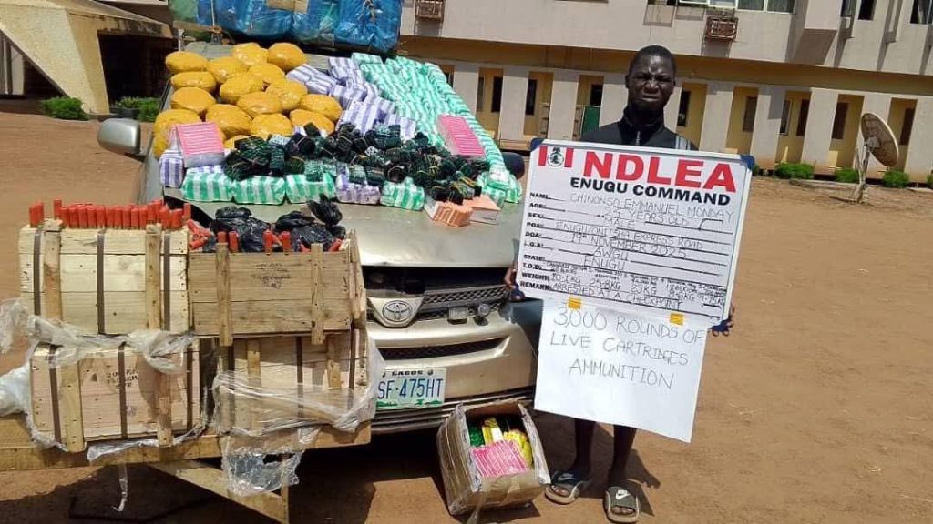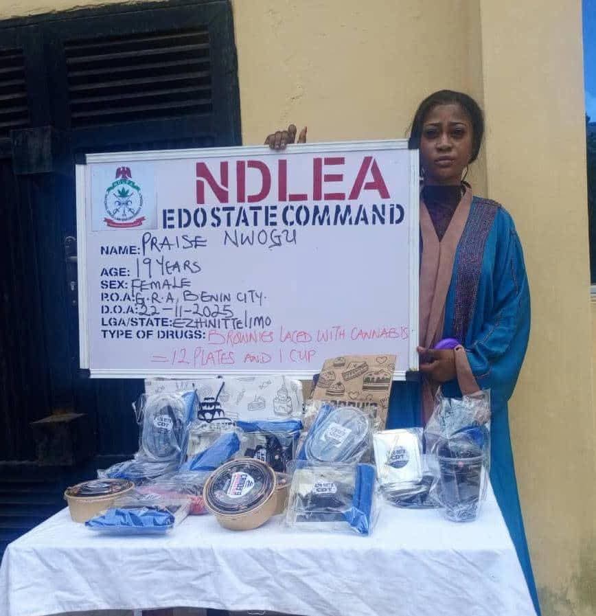 The NDLEA’s nationwide operations revealed further arrests and drug recoveries: a couple arrested in Cross River State with over 4.7 tons of Skunk seized from their warehouse; two young women in Edo involved in producing and selling drug-laced brownies online; and multiple seizures of tramadol pills, pentazocine injections, live ammunition, and codeine-based syrups in Kebbi, Niger, Borno, and the Federal Capital Territory.