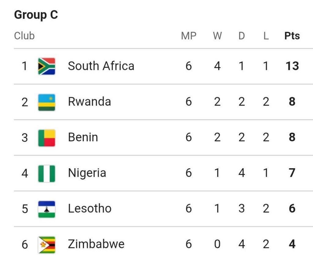 Currently sitting fourth in Group C with seven points, Nigeria faces a challenging route to the 2026 World Cup, trailing leaders South Africa who top the group with 13 points. Only the group winner qualifies directly, while the runner-up may get a chance to progress through playoffs.