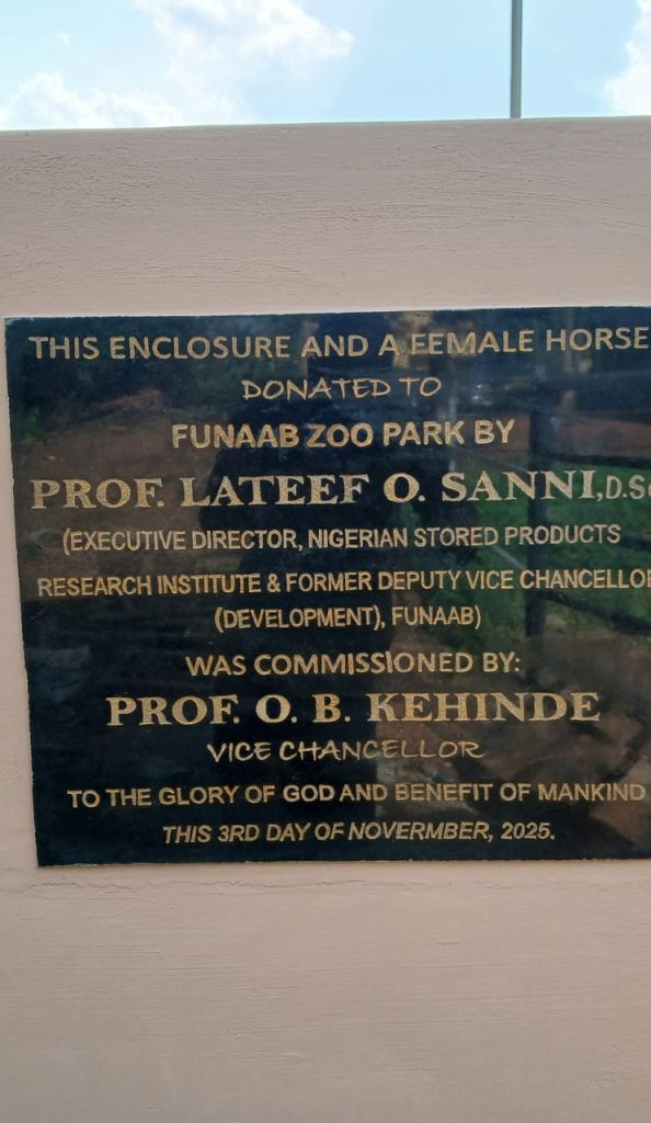 Continuing his record of groundbreaking contributions, Prof. Sanni has now become the first graduate to make a personal donation of both a structure and an iconic animal to the FUNAAB Zoo Park, a gesture that significantly enhances the university’s facilities and wildlife conservation efforts.