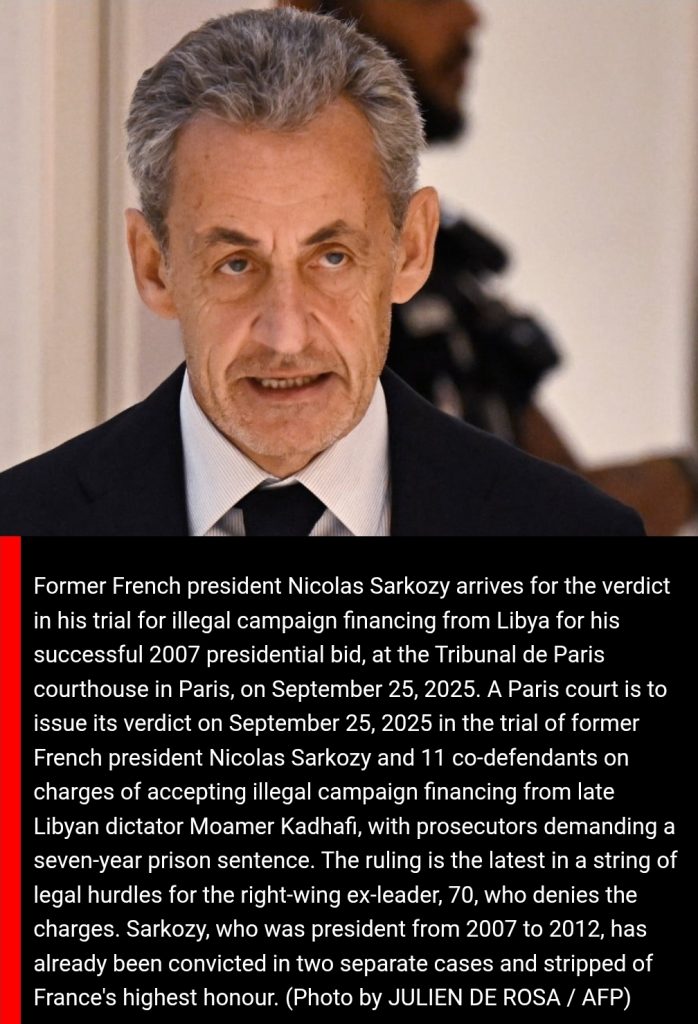 Former French President Nicolas Sarkozy was found guilty on Thursday by a Paris criminal court of criminal conspiracy in the high-profile trial over allegations that his 2007 presidential campaign was illegally financed with millions of euros from the late Libyan leader Muammar Gaddafi. This verdict marks another legal blow in a series of corruption cases against the right-wing ex-leader, who denies the charges .