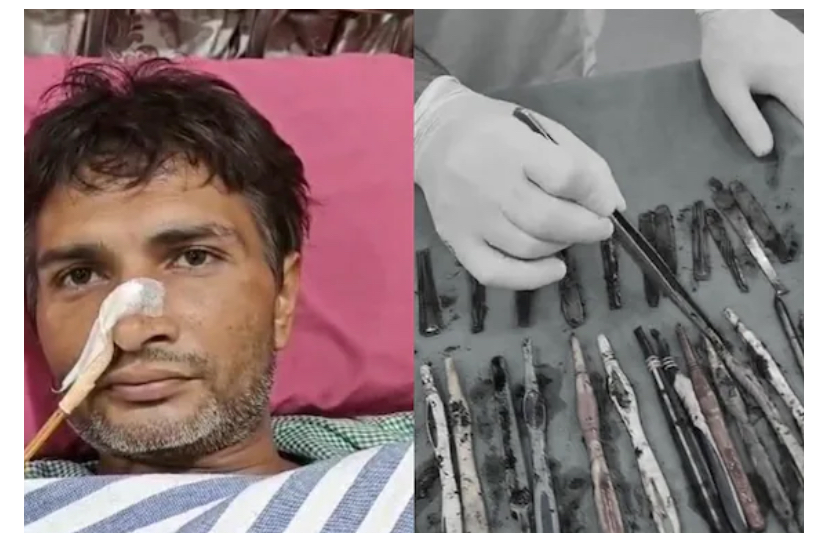 Surgeons in Hapur, India, have reportedly removed 29 steel spoons, 19 toothbrushes, and two pens from the stomach of a man in what doctors described as one of the most unusual and shocking medical cases in recent times.