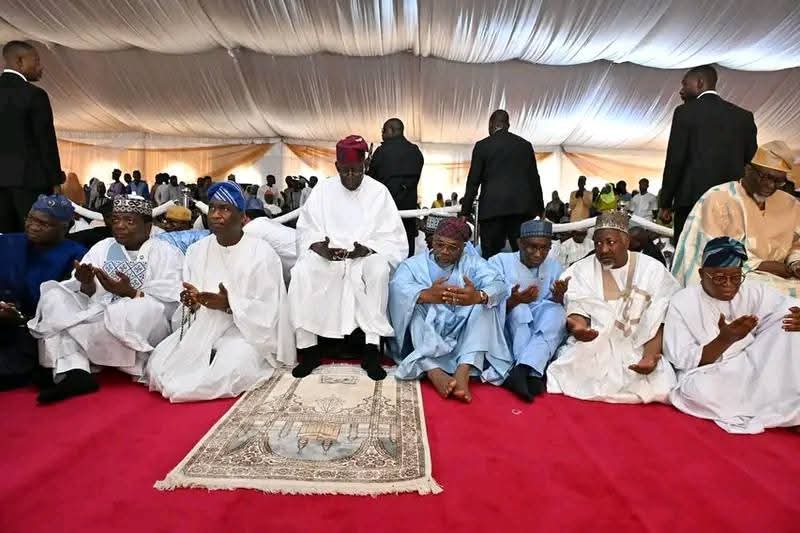 Arriving around 9 AM, President Tinubu, accompanied by top government officials and other dignitaries, participated in the special prayers led by the Chief Imam of Lagos State, Sheikh Suleiman Oluwatoyin Abu-Nola.