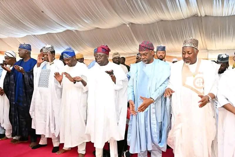 Lagos, Nigeria – President Bola Ahmed Tinubu today observed the Eid-el-Kabir prayers at the historic Dodan Barracks prayer ground in Lagos State, joining a multitude of Muslim faithful in the celebration of sacrifice and devotion.