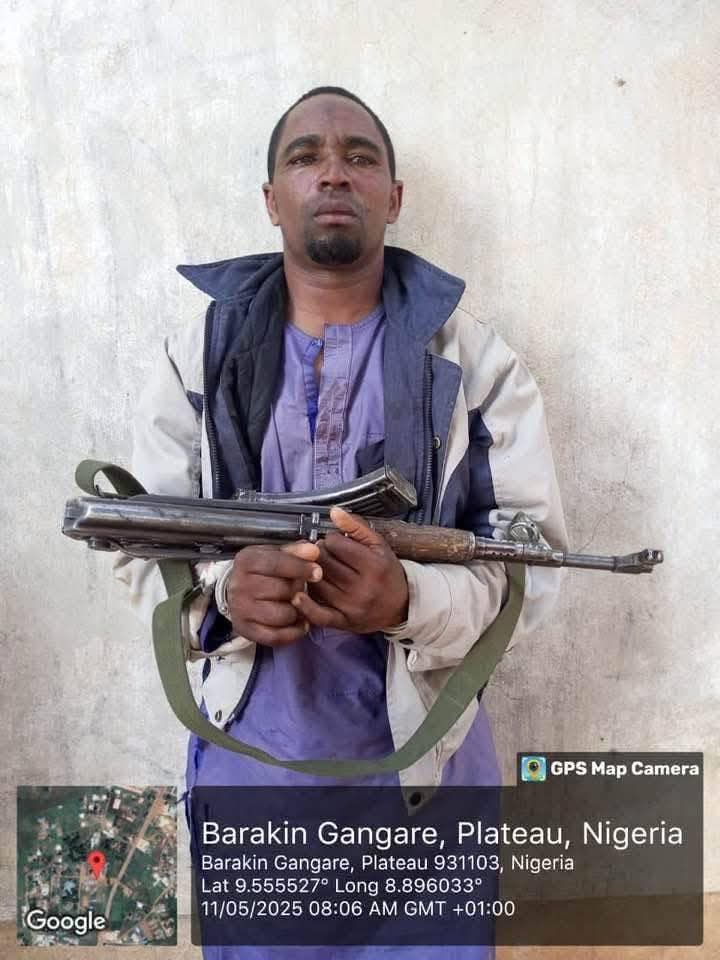 The operation, which took place at Marit Mazat in Barkin Ladi Local Government Area (LGA) of Plateau State, was a follow-up to the arrest of another suspected gunrunner and kidnapper, Mr. Yahaya Adamu, who was apprehended on Friday, May 10, 2025, at Barakin Gangare in the same LGA.