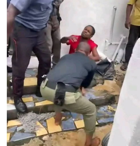 In the viral clip, he is seen being forcefully pulled down, beaten, and tied up with a rope by security personnel and others present.